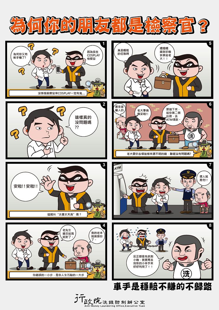 行政院洗錢防制辦公室製作防制洗錢宣導海報、短片