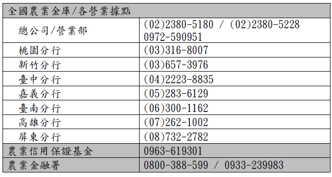 (一)114年丹娜絲颱風、七二八豪雨及楊柳颱風受災農漁業者:行政院於114年9月30日依丹娜絲特別條例公告,災區範圍包括苗栗縣、臺中市、南投縣、彰化縣、雲林縣、嘉義縣、嘉義市、臺南市、高雄市、屏東縣、花蓮縣及臺東縣,農業部提供受災農漁業者既有貸款本金展延免息。未來若特別條例第2條新增災害及災區範圍,並經行政院公告為災區者,將比照適用。